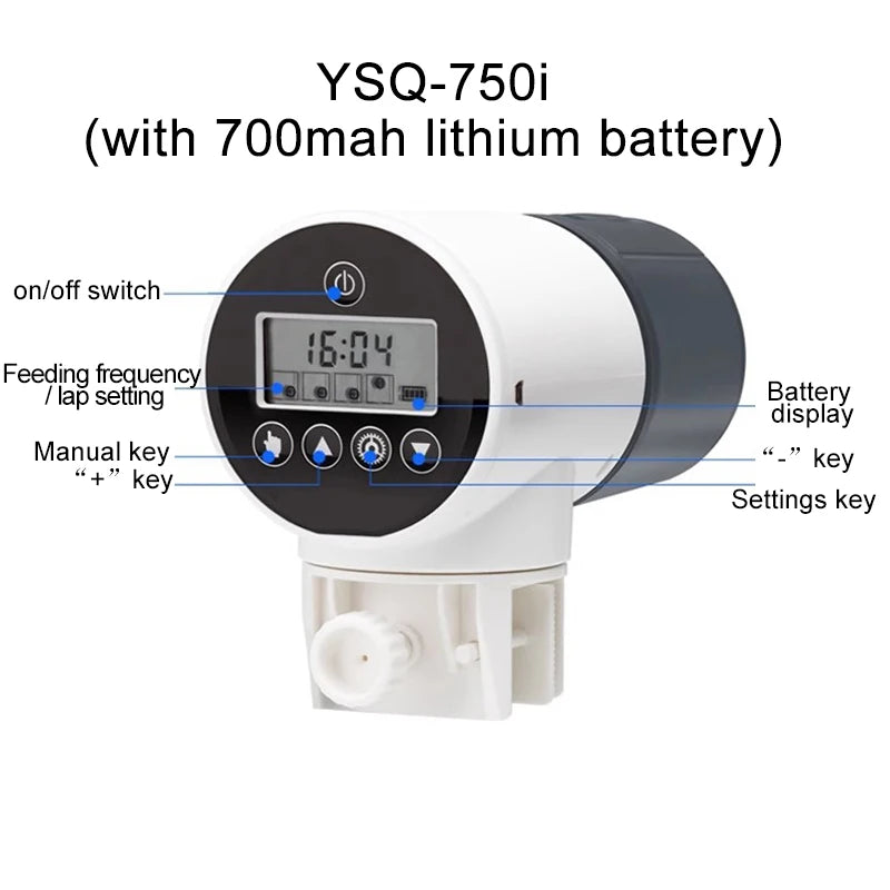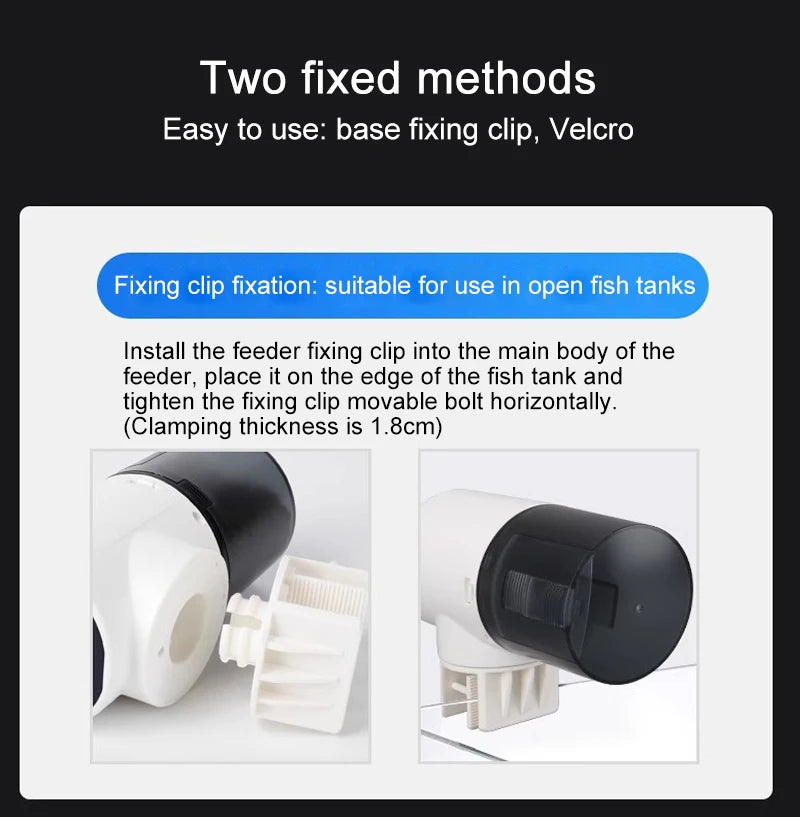 SPECIFICATIONSBattery Included: YesBrand Name: TUNFANChoice: yesHigh-concerned chemical: NoneItem: Fish tank food dispenserLCD Display: YesMaterial: PlasticMax Output: 200gMin Output: 50gModel Number: YSQNumber of gears: 4Origin: Mainland ChinaProduct: Automatic Aquarium FeederVoltage: 3vVolume: 200mlAutomatic Aquarium Feeder Intelligent Timing Feeder Fish Tank Gold Fish Feeder Large Capacity Turtle Smart LCD Display DispenserProduct Features:1. Intelligent...