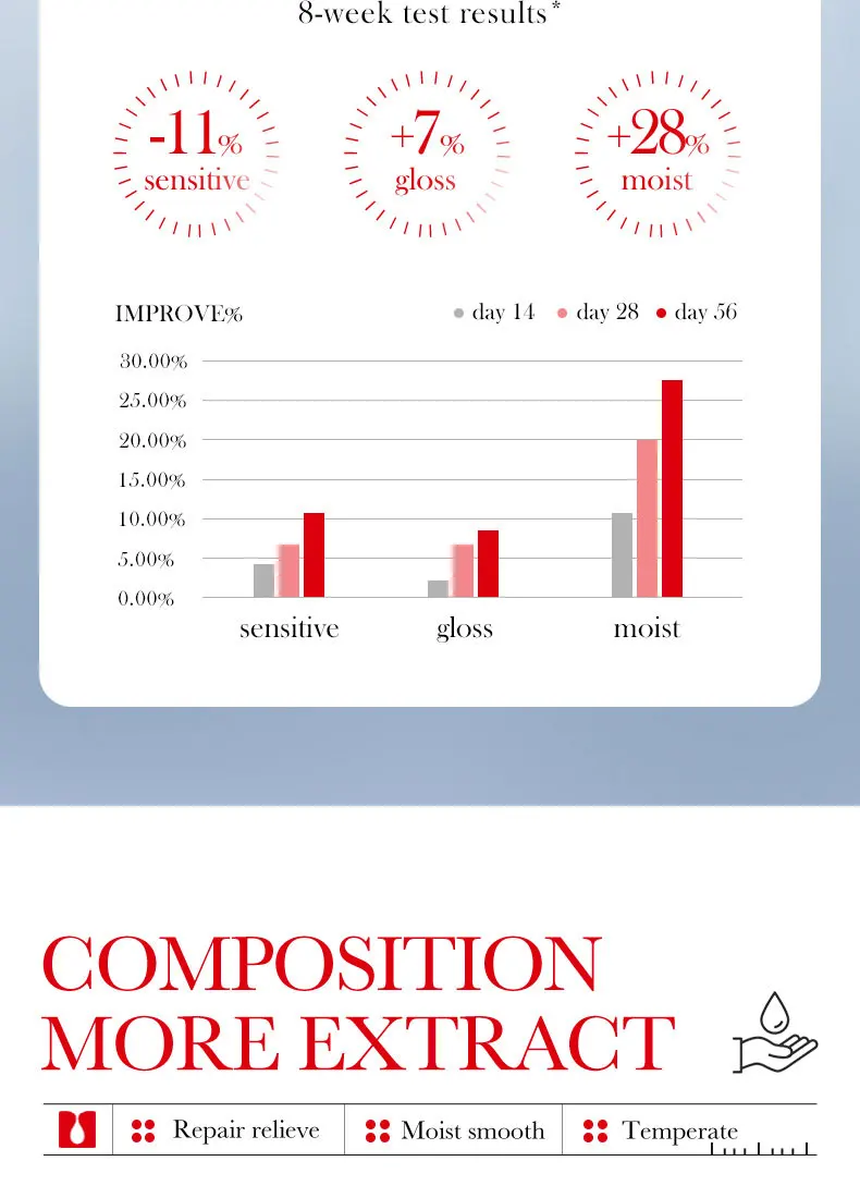 Ingredient: Glycerin, portulaca oleracea, hamamelis extract, nicotinamide Ceramide