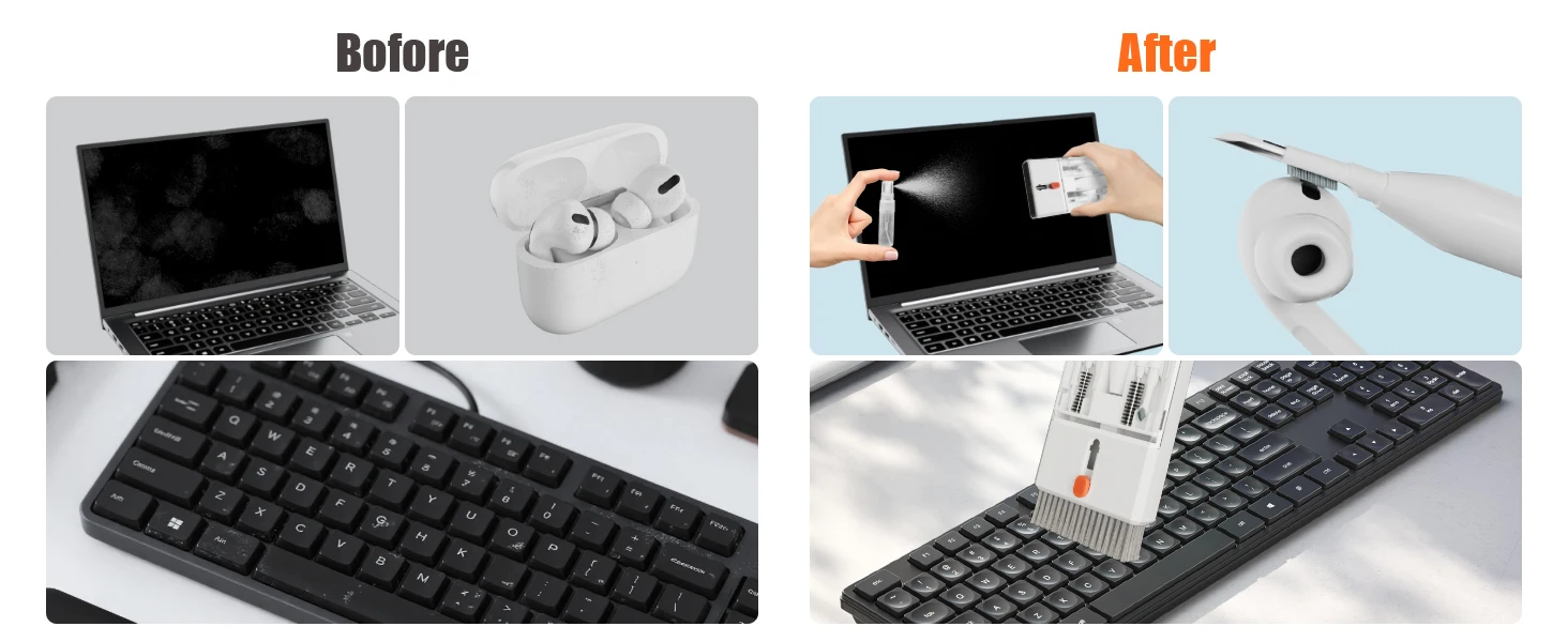 Electronics Cleaning Kit - The Ultimate Gadget for iPhone, AirPods, Android, Keyboards, Soft Brushes, Screen Wipes, Keycap Tool