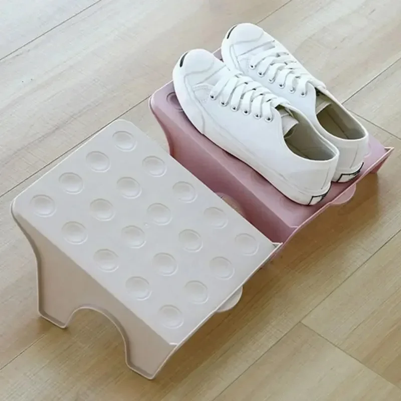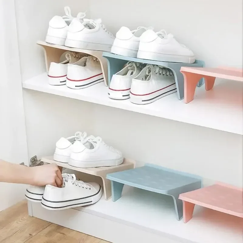 You can place your shoes on the double shelf shoe organizer, and it is practical and space-saving.
