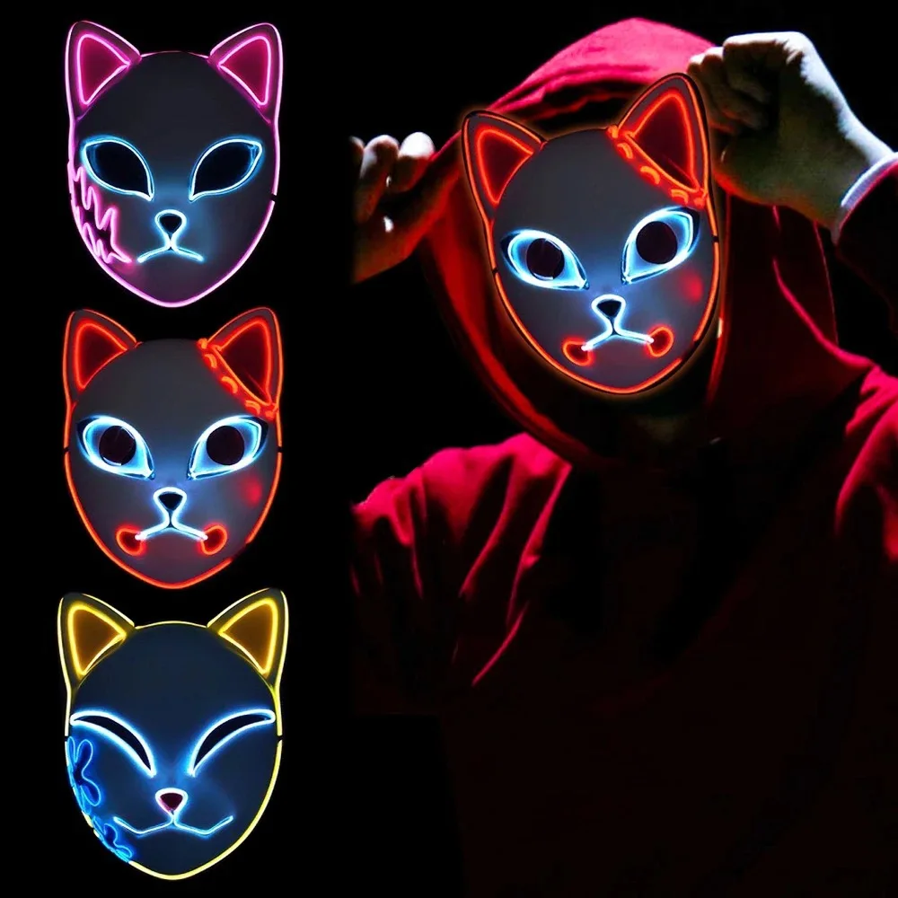 LED Fox Mask Halloween Mask Japanese Anime Cosplay Luminous Mask Suitable for Masquerade Holiday Party No Batteries Included