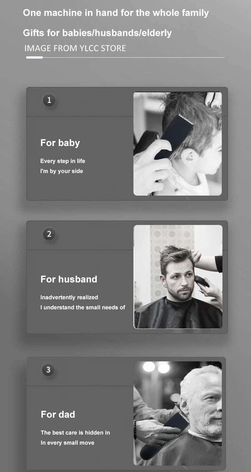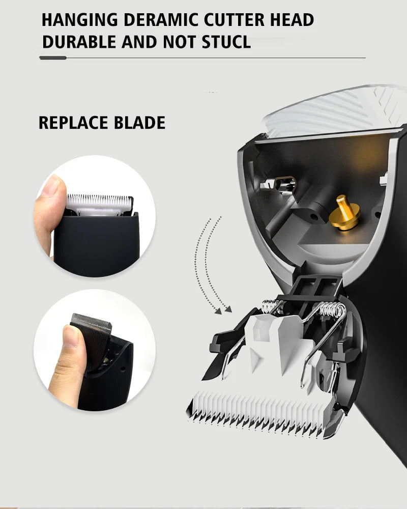 SPECIFICATIONSBrand Name: MLGCertification: CE,FCC,RoHSChoice: yesEpilator Type: PincentFunction: dry haircut,wet haircut,Fast Charging,Charging indicationHigh-concerned chemical: NoneItem Type: EpilatorMaterial: ABSNozzle type: CeramicOrigin: Mainland ChinaPower Source: RechargeablePower Type: RechargeableSize: 155*55*175MMUse: Bikini,BODY,Face,Underarm,BODY     Professional Hair Clipper Electric Hair Trimmer For Men Washable Hair Machine USB Shaver Rechargeable Cordless Body Beard Razor Product Description★【Elegant Design】:...
