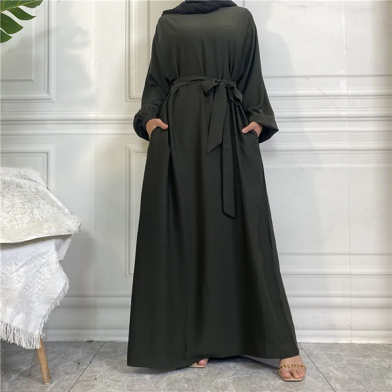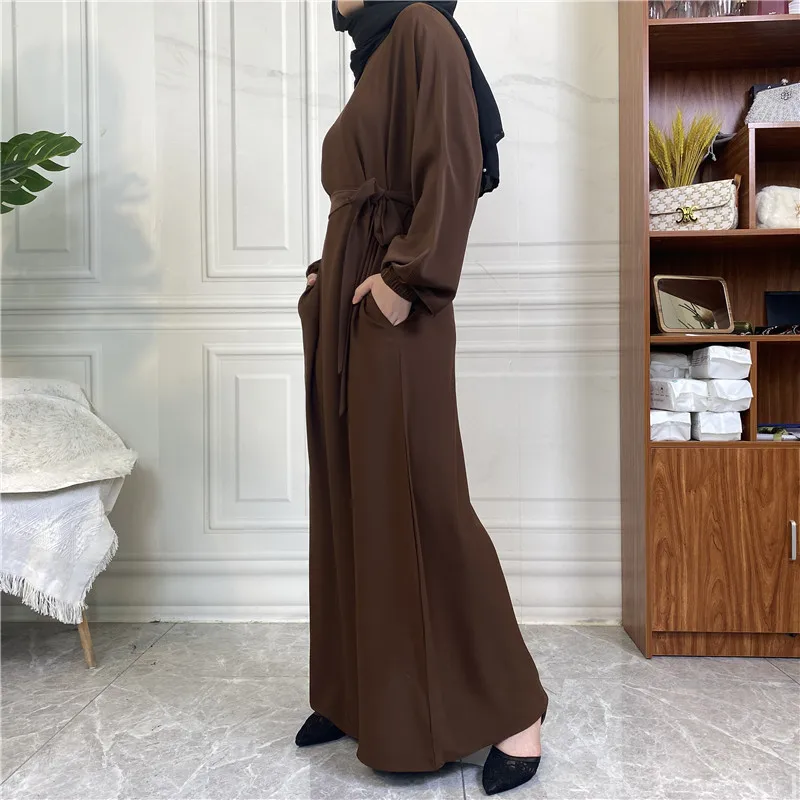 Modest for Muslim Women Casual Abayas Prayer Longue Maxi Dress Dubai Turkey Arabic Robe Belted Ramadan Eid Kaftan Islam Jalabiya