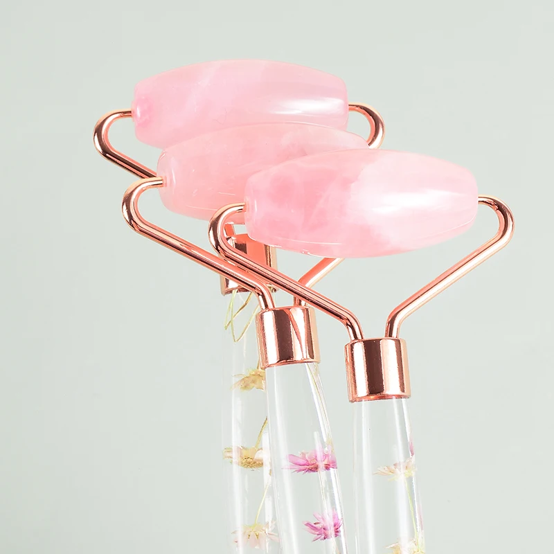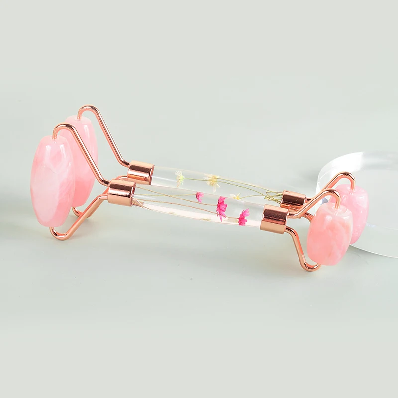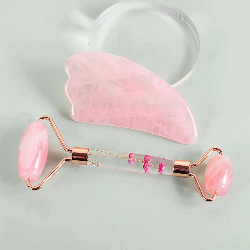Natural Facial Massager Face Roller Gua Sha Scraper Double Heads Jade Stone Roller Skin Care Rose Quartz Massage for Face Body