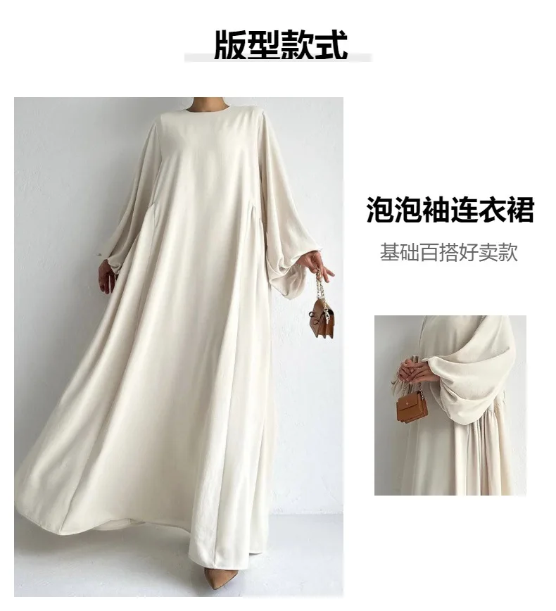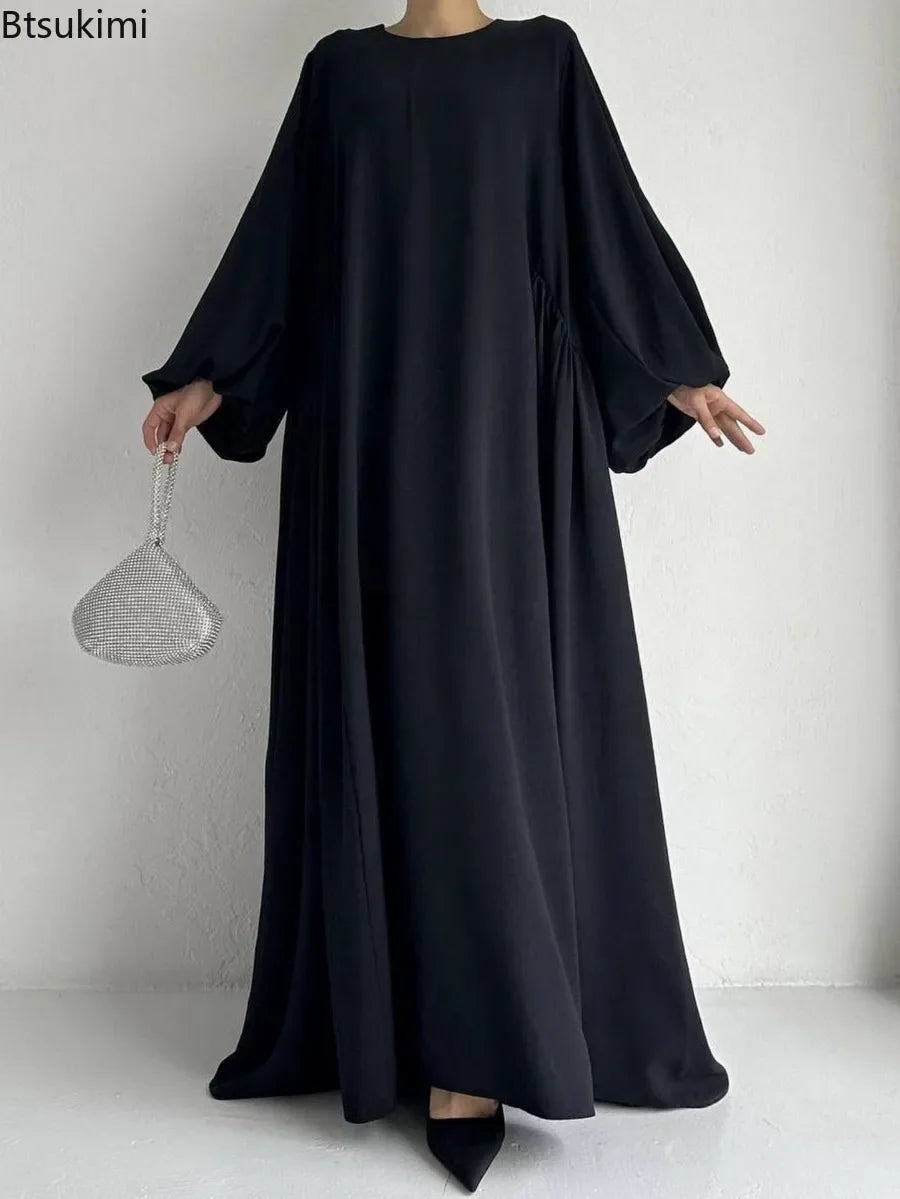 New Women Muslim Dresses Fashion Simple Solid Abaya Ramadan Caftan Elegant Female Casual Plain Maxi Dress Modest Dress for Women