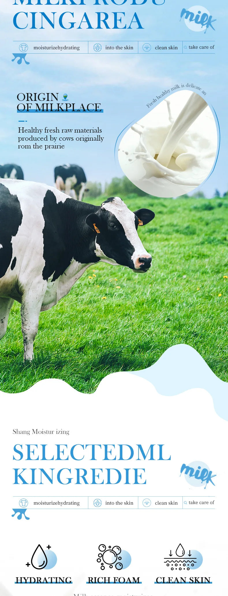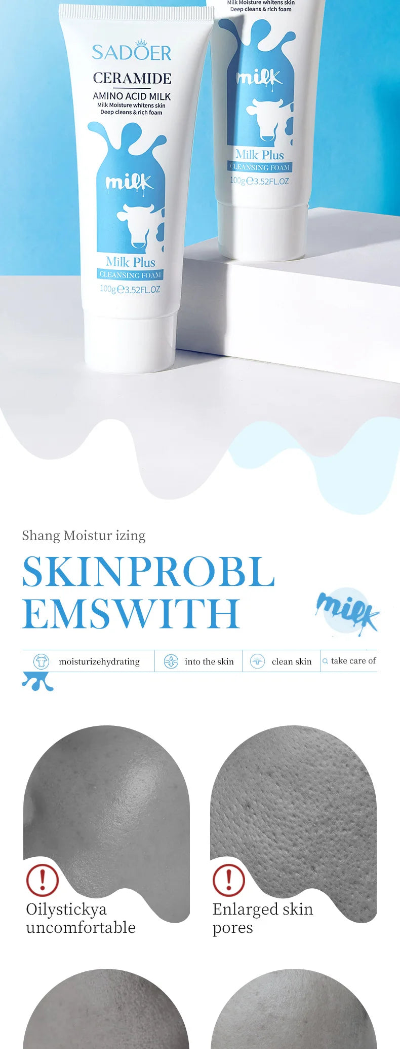 SADOER Milk Facial Cleanser Nourishing Moisturizing Skin Brightening Face Wash Foam Face Cleanser Facial Skin Care for Beauty