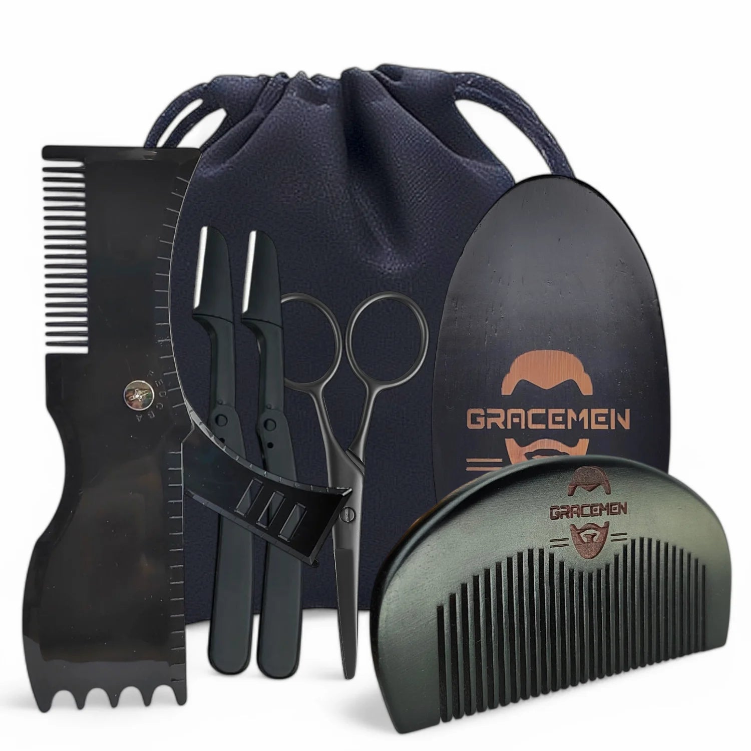 The Gracemen Beard Kit - 6 in 1 Grooming Suit for Men- Beard Template & Brush & Comb & Eyebrow Razor & Scissors with Travel Bag