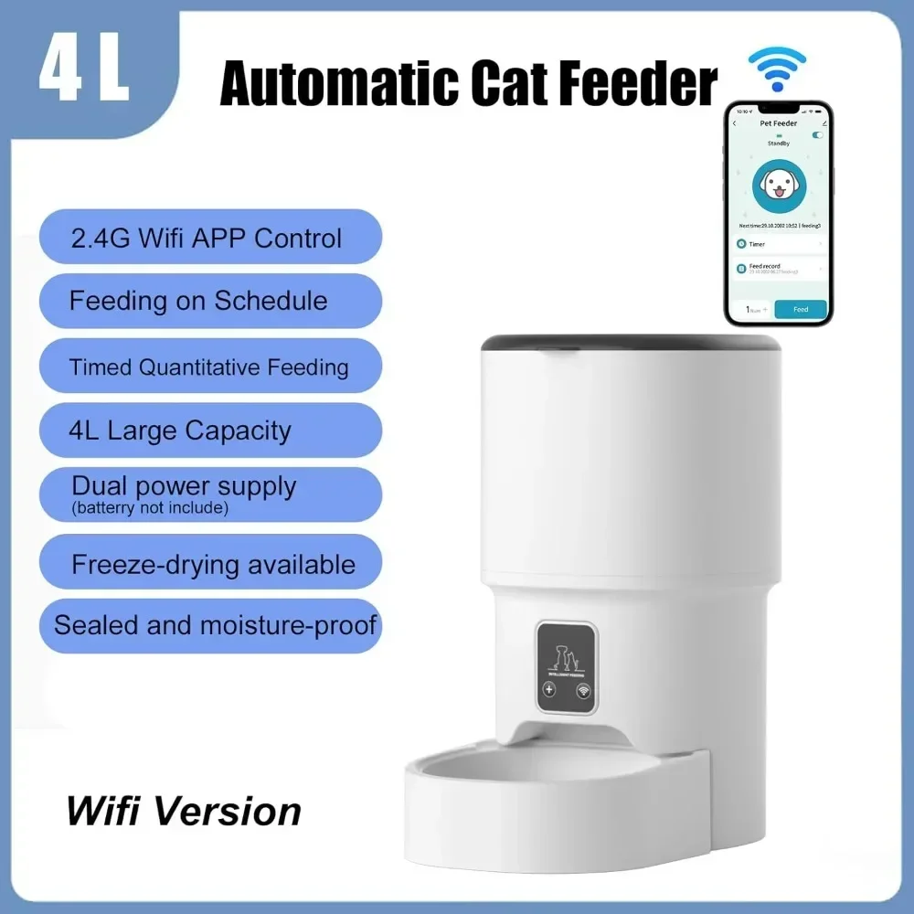 WiFi Automatic Cat Feeder 4L 2.4G Timed Multiple Auto Smart Dog Electric Self Feeding Remote Control Dry Food Basic Dispenser