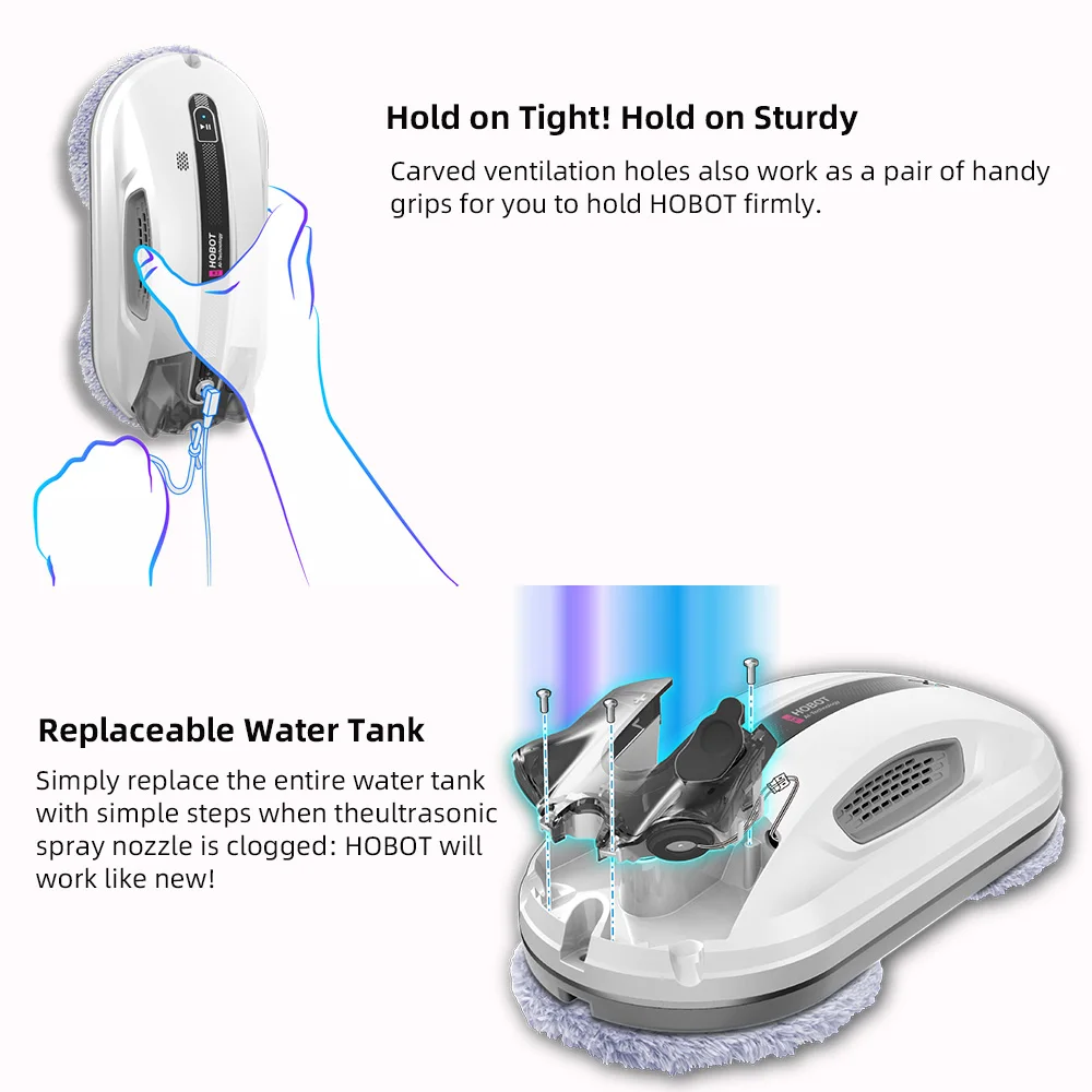 SPECIFICATIONSAdhesive Type: Vacuum, squareApp-Controlled: YesApplication: CarBrand Name: None,HOBOTCleaning Pattern: Liner cleanEdge Detection: Central Pressure SensorEmbedded Li-Po Battery: 20 MintuesHigh-concerned chemical: NoneModel Number: R3Origin: Mainland ChinaPlace of Origin: Jiangxi, ChinaPower (W): 72Private Mold: YesReplaceable Water Tank: 30mlSafety Rope Strength: 200KGFType: othersVacuum Cleaner Installation: Plug and playVacuum Robot Name: Hobot R3 window...
