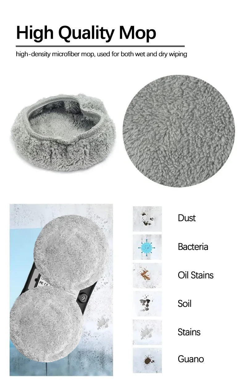 1. Wait 20 seconds after starting up until the blue light stop flashing,Then start working. Because the robot need 20sec to detect the glass plane.